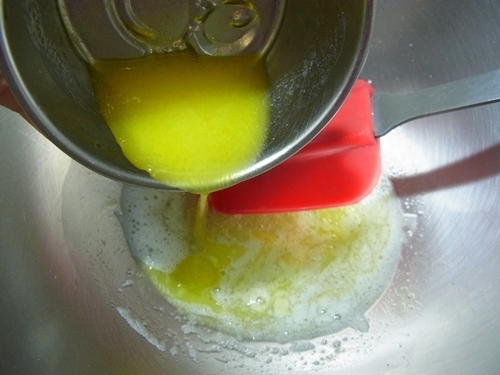 2.加入隔水融化的奶油,也是邊攪拌較易融合。