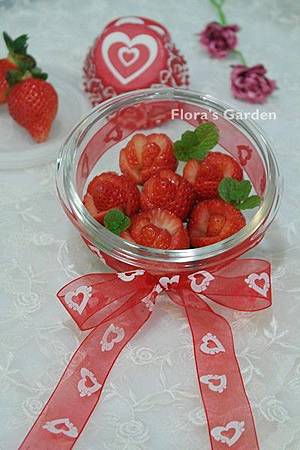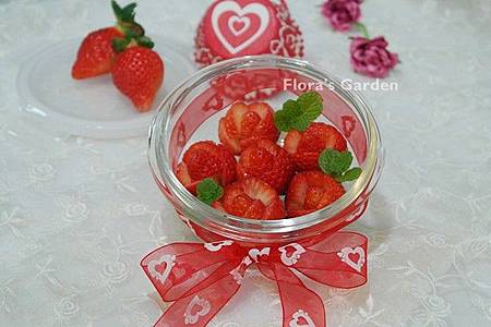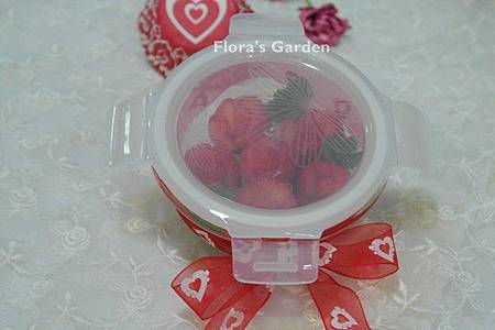 放在玻璃保鮮盒中、以薄荷葉點綴, 繫上緞帶,就像一束玫瑰花禮盒。
