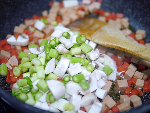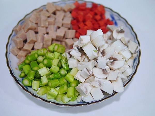 炒飯配料:金時胡蘿蔔、火腿、蘆筍、蘑菇~等量