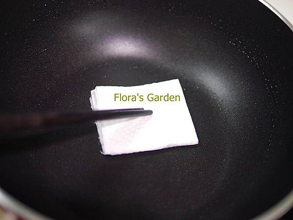 不沾鍋倒少許油加熱、用廚房紙巾擦掉多餘的油。