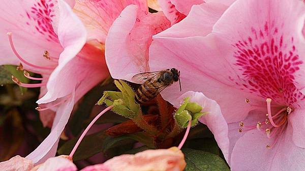 杜鵑花叢間忙碌的蜜蜂飛個不停,有時我想~它們不知道有沒有想過要偷懶一下齁![]()