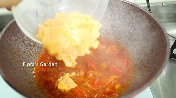 因為湯汁很美味拌飯好吃、所以水份不收光,倒入炒蛋快速拌炒一下即可起鍋