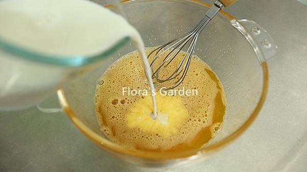 蛋加糖、鹽打到顆粒溶解、加鮮奶拌勻