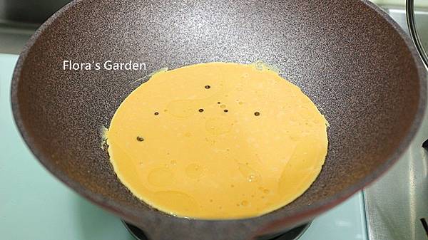 蛋加鮮奶油打到起泡泡即可不用打過頭、倒入鍋中