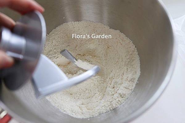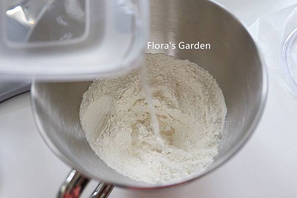 因為這個吐司我做過,所以一次將水分加入,第一次做可以留小部分做調整