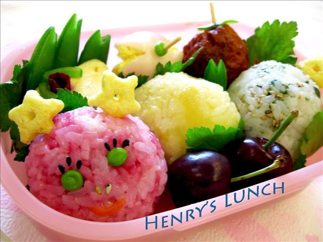 4.加上眼睛~~豆仁;嘴巴~~紅蘿蔔,再轉一下固定